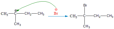 Step 4: Final step is the nucleophilic attack of bromide ion on tertiary carbocation to form 2-bromo-2-methylbutane.