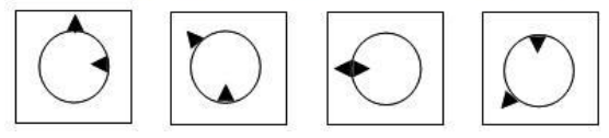 The Triangle outside the circle is moving in anticlock wise direction at the angle of 45 degree. The Triangle inside the circle is moving in anticlock wise direction at the angle of 90 degree. Therefore the next image will be-