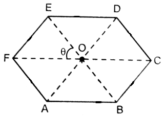 The correct answer is Option (4) → $\frac{\sqrt{3}μ_0I}{πa}$ The correct expression for the magnetic field at the center of the hexagon is - $B=\sqrt{3}\frac{μ_0I}{πa}$ from right angled ΔAMO, $\tan\phi=\frac{AM}{OM}$ $⇒\tan 30°=\frac{a/2}{r}$ $⇒r=\frac{a}{2\tan 30}=\frac{\sqrt{3}a}{2}$ Magnetic field along AB, $B_{AB}=\frac{μ_0}{4π}×\frac{I}{r}(\sin θ+\sin θ)$ $B_{AB}=\frac{μ_02I}{4πr}\sin 30°$ $=\frac{μ_0I\sqrt{3}}{πa}$ |