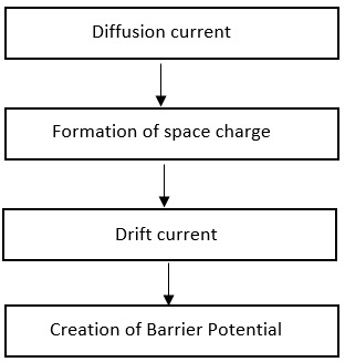 Choose the correct order for the formation of p-n junction diode. (A) diffusion current Choose the correct answer from the options given below: |