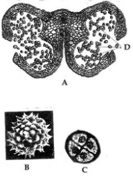 The correct answer is Option (1) → (A) and (D) only Pollen grains represent the male gametophyte in seed plants, and they play a crucial role in the sexual reproduction of these plants. Here's how this process works. The male gamete in angiosperms (flowering plants) is formed within the pollen grain. This process occurs in the anthers of flowers . The male gametophyte contains the male gametes, which are the sperm cells responsible for fertilization. When the pollen grain is mature it contains two cells, the vegetative cell and generative cell . The vegetative cell is bigger, has abundant food reserve and a large irregularly shaped nucleus. The generative cell is small and floats in the cytoplasm of the vegetative cell. It is spindle shaped with dense cytoplasm and a nucleus. In over 60 per cent of angiosperms, pollen grains are shed at this 2-celled stage. In the remaining species, the generative cell divides mitotically to give rise to the two male gametes before pollen grains are shed (3-celled stage). |