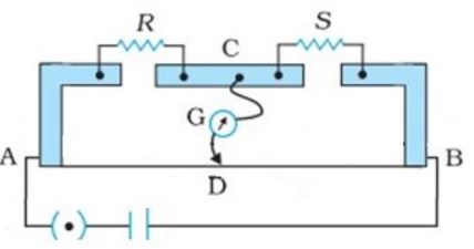 In a meter bridge, the null point is found at a distance of 60 cm from end A. If a 5 Ω resistor is now connected in series with S, the null point occurs at 50 cm. The values of R and S are, respectively |