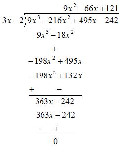 The correct answer is Option (2) → $\frac{2}{3}$ $\left|\begin{array}{ccc}3 x-8 & 3 & 3 \\ 3 & 3 x-8 & 3 \\ 3 & 3 & 3 x-8\end{array}\right|=(3x-8)((3x-8)^2-9)-3(3(3x-8)-9)+3(9-3(3x-8))$ $⇒(3x-8)^3-9(3x-8)-9(3x-8)+27+27-9(3x-8)=0$ $⇒(3x-8)^3-27(3x-8)+54=0$ $⇒9x^3+512-72x(3x-8)-81x+216+54=0$ $⇒9x^3-216x^2+495x-242=0$ $∴x=\frac{2}{3}$ |