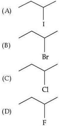Reactivity order of the following alkyl halides towards dehydrohalogenation is: Choose the correct answer from the options given below: |