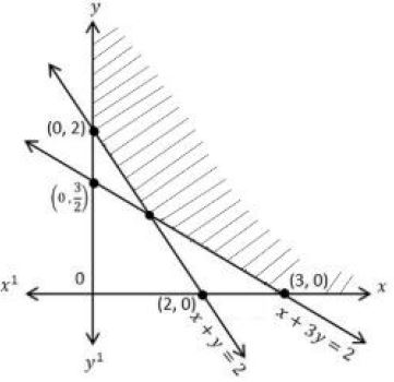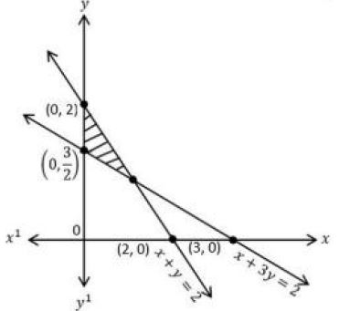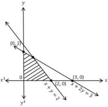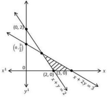 For LPP: Maximize $z = 2x + 3y$ subject to the constraints $x + y ≥2, x + 2y ≥3, x ≥0, y ≥0$, which of the following graph represents the feasible region of the above LPP as shaded portion?