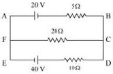 Using Kirchhoff's rules, calculate the current through 20 Ω and 10 Ω resistance in the given circuit:
