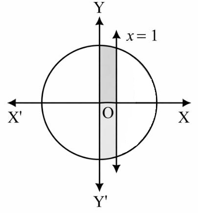 The correct answer is Option (1) → $\sqrt{3} + \frac{2\pi}{3}$ $x^2 + y^2 = 4$ $∴y = \sqrt{4 - x^2}$ Required area $= 2 \int\limits_{1}^{2} y \, dx$ $= 2 \int\limits_{1}^{2} \sqrt{4 - x^2} \, dx$ $= 2 \left[ \frac{x}{2} \sqrt{4-x^2} + \frac{1}{2} \times 4 \sin^{-1} \frac{x}{2} \right]_0^1$ $= 2 \left[ \left( \frac{\sqrt{3}}{2} + 2 \times \frac{\pi}{6} \right) - 0 - 0 \right]$ $= \left( \sqrt{3} + \frac{2\pi}{3} \right) \text{ unit}^2$ |
