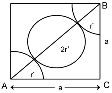 Each face is tightly packed with corner atoms. Atoms have a radius equal to ‘r’.If seen diagonally, one complete atom and two parts of an atom are situated at the diagonal. Let's consider that, the anion is at the corners of the cubic structure and the cation is at the center of the face. Then the face diagonal having a length of a is equal to twice the sum of the radius of the cation and anion. That is the formula that related the radius of the cation, the radius of the anion with the edge length, \(2 r^+ + 2 r^− = a\) --------- (1) Where \(r^+\) is the radius of the cation, \(r^−\) is the radius of the anion, and ‘a’ is the edge length. Here we are given, The edge length of the FCC cell is, \(508\) pm The radius of the cation is given as, \(110\) pm We are interested to find the radius of the anion. Let's substitute the values in the above equation (1). we have, \(2 r^+ + 2 r^− = a\) ⇒ \(r^− = \frac{a − 2 r^+}{2}\) ⇒ \(r^− = \frac{508 − 2 (110)}{2}\) ∴ \(r^− = 144\) pm Therefore, the radius of the anion is equal to 144 pm. |