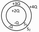 In the given figure, the ratio of electric fluxes through surfaces $S_1$ and $S_2$ is