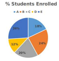 The given pie chart shows the percentage of students enrolled for the courses A, B, C, D and E in a university and the table shows the percentage of students that passed out of the enrolled students.