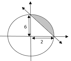 The smaller area between the ellipse $\frac{x^2}{4}+\frac{y^2}{36}=1$ and the line $\frac{x}{2}+\frac{y}{6}=1$ is given by: |