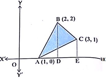 Using integration find the area of region bounded by the triangle whose vertices are $(1, 0)$, $(2, 2)$ and $(3, 1)$. |