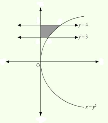 The area of the region bounded by the curve $x=y^2$, y-axis and the line y = 3 and y = 4 is: |