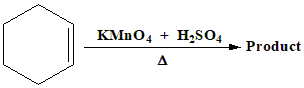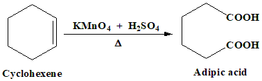 Oxidative cleavage using potassium permanganate \((KMnO_4)\) in the presence of sulfuric acid \((H_2SO_4)\) and heat is a powerful method for breaking carbon-carbon double or triple bonds in organic molecules, leading to the formation of carboxylic acids, ketones, or carbon dioxide, depending on the structure of the substrate. When an alkene is treated with hot, acidic potassium permanganate, the double bond is cleaved, and the two carbon atoms of the double bond are oxidized. If the carbon is attached to hydrogen, a carboxylic acid is formed. If the carbon is attached to another carbon, a ketone or another carboxylic acid can result.
