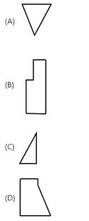 Select the parts from (A), (B), (C) and (D) which can fit into each other to form a complete square. Choose the correct answer from the options given below: |