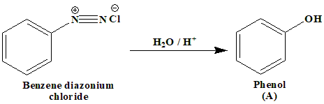 The diazonium salt is hydrolyzed with water, which converts the diazonium group into a hydroxyl group. The hydrolysis of phenyl diazonium chloride results in phenol (\(C_6H_5OH\)). So, the correct answer is phenol. |