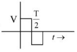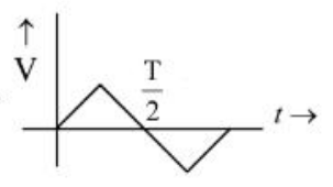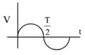 The correct answer is Option (4). $V=-L\left(\frac{di}{dt}\right)$ for first half V is negative and for second half is positive. |