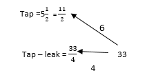 Leak's efficeincy = 6 - 4 = 2 Now → Leak will take = \(\frac{33}{2}\) × \(\frac{3}{10}\) = \(\frac{99}{20}\) hr to empty 30% of the tank. |