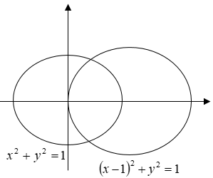 The correct answer is Option (3) → $(\frac{1}{2}, ±\frac{\sqrt{3}}{2})$ $x^2+y^2=1$ ...(1) $(x-1)^2+y^2=1$ ...(2) comparing them $x^2=(x-1)^2$ so $x-1=±x$ so $x=\frac{1}{2}$ at $x=\frac{1}{2}$ $(\frac{1}{2})^2+y^2=1⇒y^2=\frac{3}{4}⇒y=±\frac{\sqrt{3}}{2}$ Points of intersection $(\frac{1}{2},±\frac{\sqrt{3}}{2})$ |
