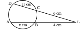 We know that, LC × LD = LB × AL We have, LC = 6, CD = 11, LB = 4 AB = x According to the question , 6 × (6 + 11) = 4 × (4 + x) = 4 + x = \(\frac{51}{2}\) = 4 + x = 25.5 = x = 21.5 |