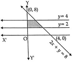 Sketch the region bounded by the lines $2x + y = 8, y = 2, y = 4$ and the y-axis. Hence, obtain its area using integration. |