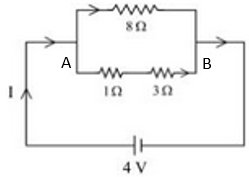 $I=\frac{V_{AB}}{R}=\frac{4}{8}=0.5A$