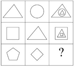 - The Missing Figure (?): Following the pattern, this should be a Pentagon as the outer shape, containing a Diamond in the middle, and another small Pentagon at the center.