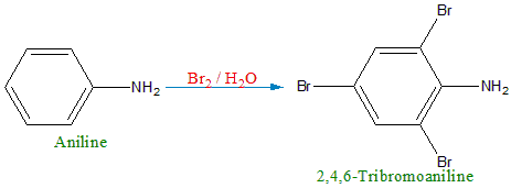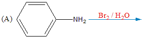 (A) When aniline reacts with bromine water it undergoes bromination. Due to this a white precipitate of \(2,4,6−tribromoaniline\) forms causing the discoloration of bromine water.