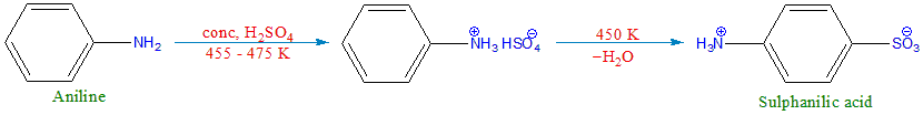 This is an electrophilic substitution reaction of bromine on aniline, because the \(NH_2\) group in aniline activates the benzene ring due to the presence of lone pair of electrons on nitrogen atom of \(NH_2\) group. It shifts its electron density toward the benzene ring making it susceptible for the electrophilic attack of bromine \((Br^+)\) at ortho and para position.