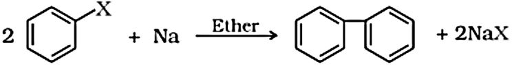 The correct answer is Option (1) → Fittig Reaction Aryl halides also give analogous compounds when treated with sodium in dry ether, in which two aryl groups are joined together. It is called Fittig reaction. |