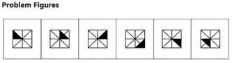 Select a figure from the options which will continue the same series as established by the problem figures.