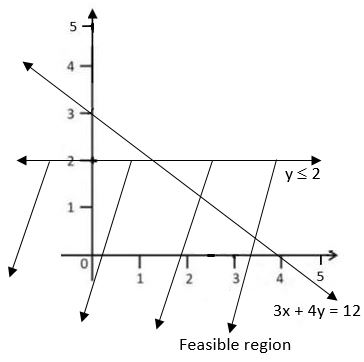 The LPP Maximize $Z=9x+12y$ subject to the constraints $3x+4y ≤12, y ≤2, x ≥ 0, y ≥ 0$ has solution at |