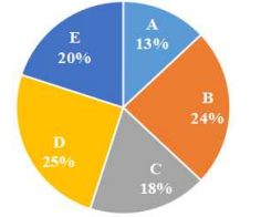 The given pie chart shows the percentage wise distribution of books in 5 different states A, B, C, D and E. The total number of books is 2500. What is the difference between the total number of books in states B and C together and the total number of books in states D and E together? |