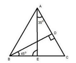 In the given figure BD perpendicular to AC then what will be the measure of angle AEB ? |