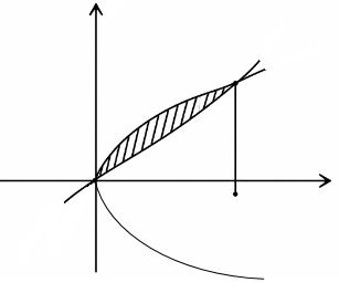 y2 = 4x , y = 2x point of intersection y = 2x y2 = 4x ⇒ (2x)2 = 4x ⇒ x2 = x ⇒ x = 1, 0 area = area under y2 = 4x - area under y = 2x so area = $\int\limits_0^1-2 x+2 \sqrt{x} d x$ $=\left[-x^2+\frac{4}{3} x^{3 / 2}\right]_0^1=\frac{4}{3}-1$ $= \frac{1}{3}$ sq. units |