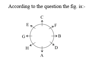 A, B, C, D, E, F, G and H are sitting around a circular table facing towards the center. H is on the immediate left of A. A is a neighbor of D. F is on the immediate right of B. C is between E and F, G is neighbor of E. Who is between F and D ? |