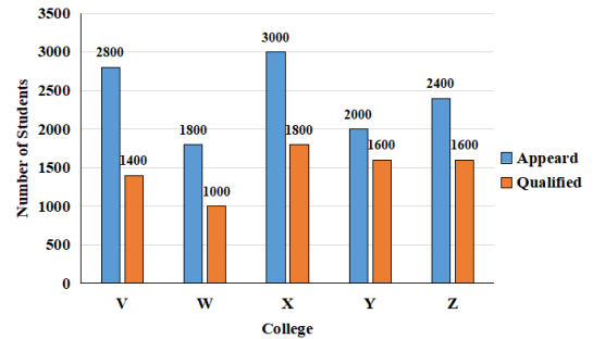Study the following graph and answer the question that follows. Number of students that appeared and qualified, from various colleges, at a scholarship examination. The average number of students that qualified in the examination from Colleges X and Y is what percentage of the average number of students that appeared for the examination from the same colleges? |