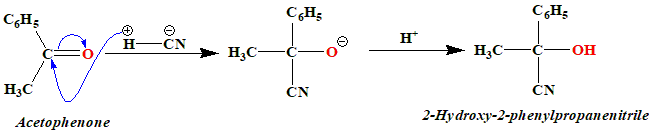 What happens when acetophenone is treated with HCN? |