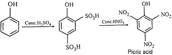 When phenol is treated with concentrated sulphuric acid, then it gets converted into phenol-2,4-disulphonic acid (X). On further treatment of X with conc. nitric acid, product Y is formed. Identify Y. |