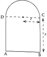 The correct answer is Option (2) → Width = $\frac{20}{4+π}m$, Height of rectangle = $\frac{10}{4+π}m$ Let r metres be the radius of the semicircle and x metres be the side BC of the rectangle ABCD. Then perimeter of the window $= 2r+ 2x + πr = 10$ (given) $⇒x=\frac{1}{2}(10-2г-πг)$ ...(i) Maximum light will be admitted through the window if the area of the window is maximum. Let A be the area of the window, $A=2r.x+\frac{1}{2}πг^2$ $=2r.\frac{1}{2}(10-2г-πг)+\frac{1}{2}πг^2$ (using (i)) $=10r-2r^2-\frac{1}{2}πг^2$ ...(ii) Differentiating (ii), w.r.t. r, we get $\frac{dA}{dr}=10-4r-πг$ and $\frac{d^2A}{dr^2}=-4-π$ Now $\frac{dA}{dr}=0⇒10-4r-πг=0⇒r=\frac{10}{4+π}$. Also when $r=\frac{10}{4+π},\frac{d^2A}{dr^2}=-(4+π)<0$ ⇒ A is maximum when $r=\frac{10}{4+π}$, then $x=\frac{1}{2}\left(10-(2+\pi).\frac{10}{4+π}\right)=\frac{10}{4+π}$ Therefore, the maximum light is admitted when the radius of semicircle = $\frac{10}{4+π}$ metres and the side BC of the rectangle = $\frac{10}{4+π}$ metres and side AB = $\frac{20}{4+π}$ metres. |