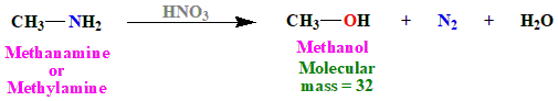 The molecular mass of \((CH_3)_3NNO\) is \(99\). Therefore, the only option consistent with the given molecular mass of \(46\) for the alcohol (\(B\)) is \(CH_3CH_2NH_2\) (Ethylamine). Upon nitration, it forms ethanol (\(CH_3CH_2OH\)). |