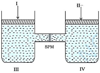 In the following diagram, to prevent osmosis, if excess pressure is applied on one side of the semipermeable membrane (SPM), then I, II, III and IV are, respectively, (A) Solution Choose the correct answer from the options given below: |