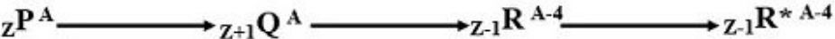 The correct answer is Option (4) → $β,α,γ$ Given nuclear decay sequence: $Z^A P \;\;\longrightarrow\;\; Z+1^A Q \;\;\longrightarrow\;\; Z-1^{A-4} R \;\;\longrightarrow\;\; Z-1^{A-4} R^*$ Analysis: 1. $Z^A P \;\;\to\;\; Z+1^A Q$ Here, $Z$ increases by 1, $A$ unchanged → β⁻ emission. 2. $Z+1^A Q \;\;\to\;\; Z-1^{A-4} R$ Here, $Z$ decreases by 2, $A$ decreases by 4 → α emission. 3. $Z-1^{A-4} R \;\;\to\;\; Z-1^{A-4} R^*$ Here, same $Z$ and $A$, only energy state changes → γ emission. ✔ Sequence of emitted particles: β⁻, α, γ |