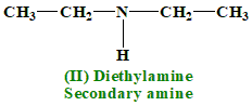 Intermolecular Forces: Hydrogen Bonding: Primary amines have an \(NH_2\) group, which allows them to form hydrogen bonds with other molecules. Hydrogen bonding occurs between the hydrogen of the \(NH_2\) group and the lone pair of electrons on the nitrogen of another molecule or within the same molecule. Dipole-Dipole Interactions: Present because of the polar \(NH_2\) group. Effect on Boiling Point: Hydrogen bonding is a strong intermolecular force, which significantly increases the boiling point. 2.Diethylamine (II)