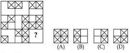 Assume the figure be divided into 3×3 matrix We can see in the First row that 1+2 = 3 Similarly, in the second row 4+5 = 6 Thus int he third row 9 should be sum of 7+8 that is all four boxes filled The correct answer is Option (1) → (A) |