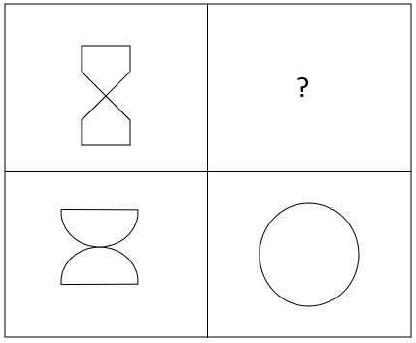 In the bottom row, two half-circles combined (left) form a complete circle (right).