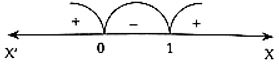 The correct answer is Option (3) → $(−∞,0)∪(1,∞)$ Given $\frac{1}{x}< 1$. First, we note that $x≠ 0$. Since $x^2 > 0$ for all $x ∈ R, x ≠0,$ $\frac{1}{x}<1 ⇒ \frac{1}{x}.x^2 < x^2$ (multiplying by $x^2$) $⇒ x < x^2 ⇒ 0 < x^2-x$ $⇒ x(x-1)>0$ ...(1) Mark the numbers 0 and 1 on the real line. By the method of intervals, the inequality (1) is satisfied when $x > 1$ or $x < 0$. ∴ The solution set is $(−∞,0)∪(1,∞)$. |