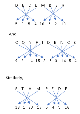 If DECEMBER is coded as 5354185213 and CONFIDENCE is coded as 9614153531454, then how will STAMPEDE be coded as? |