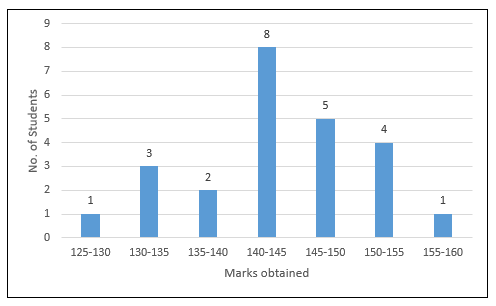 Number of students obtained marks more than 130 = 2 + 8 + 5 + 4 + 1