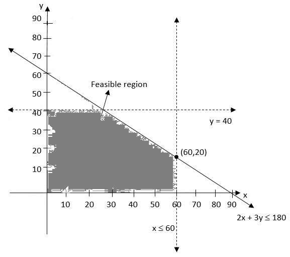 Maximize $z= 15x+ 13 y $ subject to constraints $2x+ 3y ≤ 180, 4x ≤ 240, 6y ≤240 , x, y ≥0.$ Which of the following is true ? (A) Feasible region is unbounded (B) Feasible region is bounded (C) Maximum value of $z=1160$ (D) Maximum value occurs at (60, 0) (E) Maximum value occurs at (60, 20) Choose the correct answer from the options given below : |